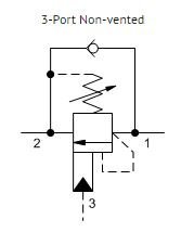Counterbalance valves with pilot assist are meant to control an overrunning load. The check valve allows free flow from the directional valve (port 2) to the load (port 1) while a direct-acting, pilot-assisted relief valve controls flow from port 1 to port 2. Pilot assist at port 3 lowers the effective setting of the relief valve at a rate determined by the pilot ratio.