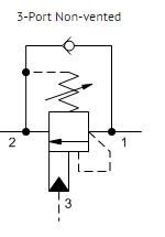 Counterbalance valves with pilot assist are meant to control an overrunning load. The check valve allows free flow from the directional valve (port 2) to the load (port 1) while a direct-acting, pilot-assisted relief valve controls flow from port 1 to port 2. Pilot assist at port 3 lowers the effective setting of the relief valve at a rate determined by the pilot ratio.