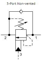 Counterbalance valves with pilot assist are meant to control an overrunning load. The check valve allows free flow from the directional valve (port 2) to the load (port 1) while a direct-acting, pilot-assisted relief valve controls flow from port 1 to port 2. Pilot assist at port 3 lowers the effective setting of the relief valve at a rate determined by the pilot ratio.
