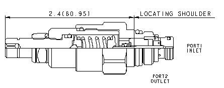 Two-port, pilot-stage, direct-acting relief cartridges are fully adjustable, normally closed pressure regulating valves. When the pressure at port 1 (inlet) is sufficient to overcome the spring force (valve setting), a flow path is opened from port 1 to port 2 (tank).
