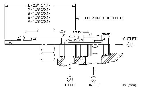 This valve is a pilot to open check valve. It has a sealed pilot, a steel seat, and is non-vented. It allows free flow from the valve (port 2) to the load (port 1) and blocks flow in the opposite direction. Pressure at the pilot (port 3) will open the valve from port 1 to port 2. Pilot pressure needed at port 3 to open the valve is directly proportional to the load pressure at port 1. Pressure at port 2 directly opposes pilot pressure.