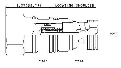 This valve is a pilot to open check valve. It has a non-sealed pilot, a steel seat, and is non-vented. It allows free flow from the valve (port 2) to the load (port 1) and blocks flow in the opposite direction. Pressure at the pilot (port 3) will open the valve from port 1 to port 2. Pilot pressure needed at port 3 to open the valve is directly proportional to the load pressure at port 1. Pressure at port 2 directly opposes pilot pressure.